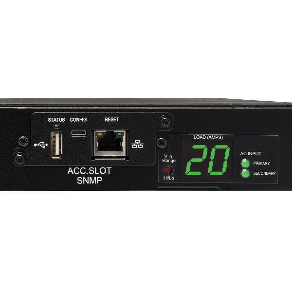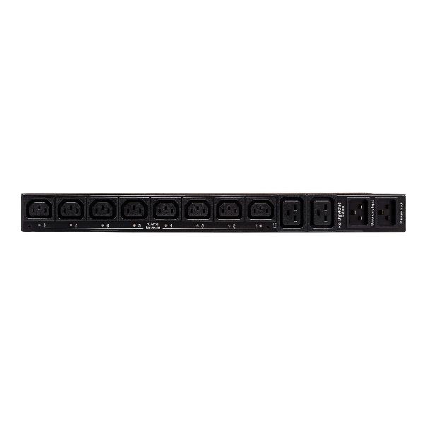 3.8kW Single-Phase Switched Automatic Transfer Switch PDU Two 200-240V C20 Inlets 8 C13 2 C19 Outputs 1U TAA