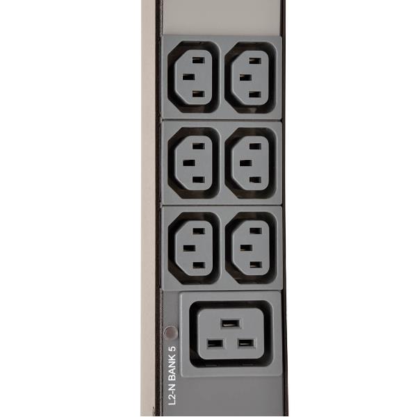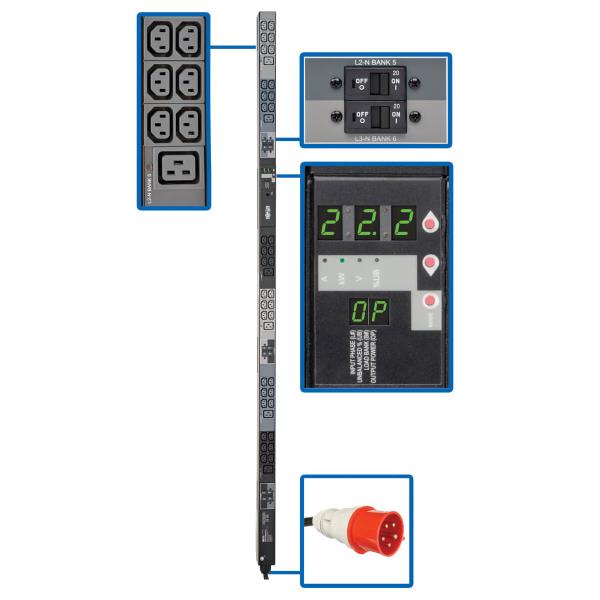 3-Phase Local Metered PDU 23kW 42 208-240V outlets (36 C13 6 C19) IEC309 32A Red (3P+N+E) 360-415V Input 0u vertical TAA