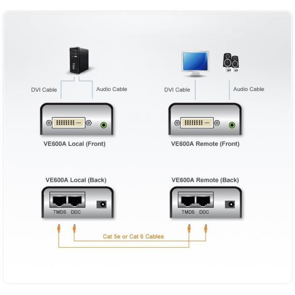 DVI OVER CAT5E/6 AUDIO/VIDEO EXTENDER (60M)