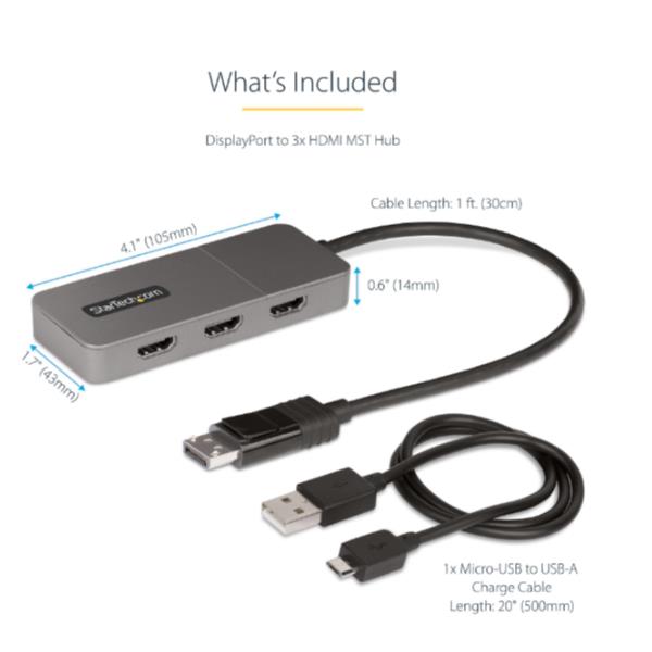 Adattatore DP HDMI a 3 Porte – Hub MST DisplayPort a HDMI 4K