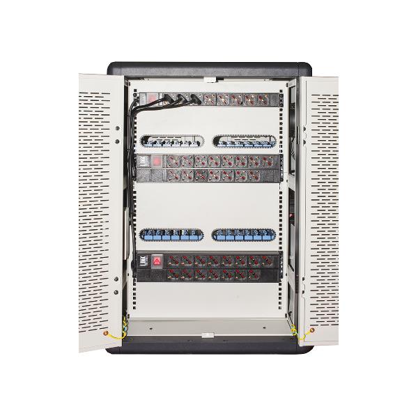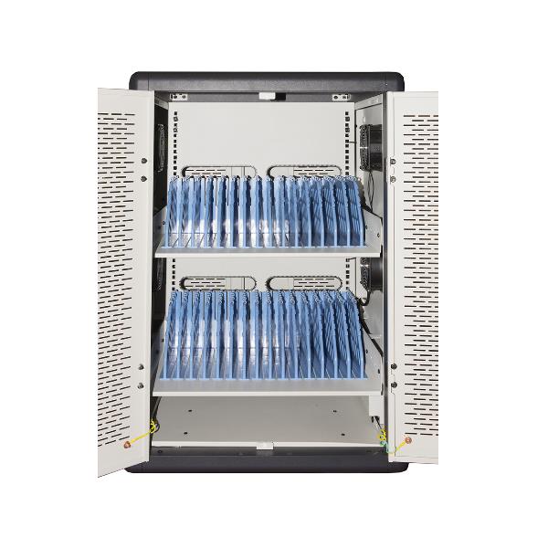 LINK – ARMADIO ALLOGGIAMENTO 30 TABLET CON RUOTE MULTIPRESE INCLUSE VENTOLE DI RAFFREDDAMENTO PORTA IN ACCIAIO TRAFORATA COLORE GRIGIO NERO