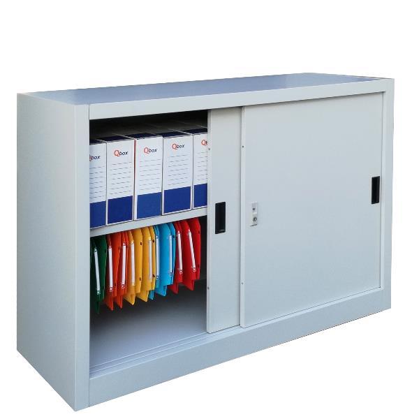 ARMADIO BASSO METALLICO KUBO ANTE SCORREVOLI 1 VANO/ 1 RIPIANO 120X45X90 CM GRIGIO FORNITO SMONTATO
