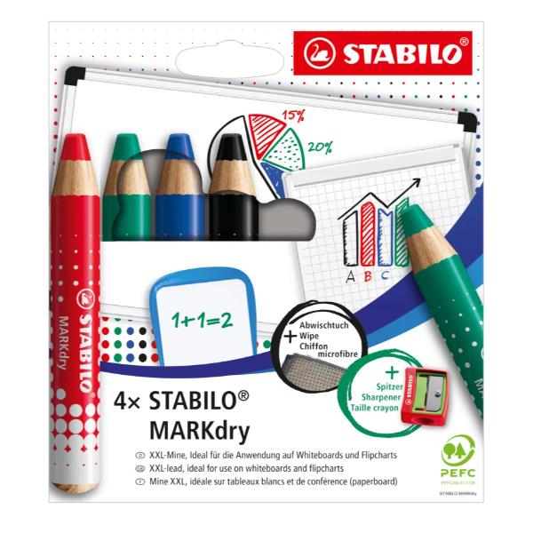 STABILO MARKdry astuccio da 4 pz + panno e temperino