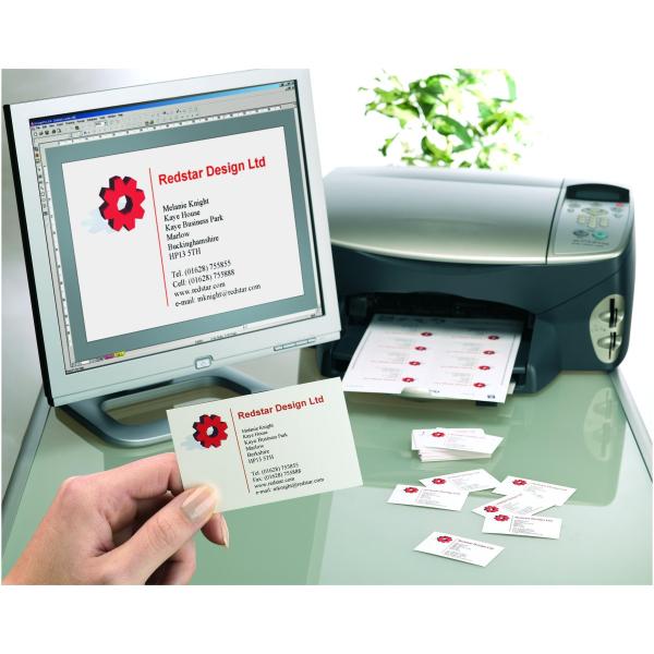 BILGIETTI DA VISITA SATINATI BIANCHI PER STAMPANTI LASER COLORI DIMENSIONI 85X54 ( 200 ETICHETTE PER CONF.) (25FF.) 220GR.