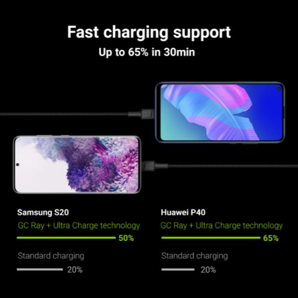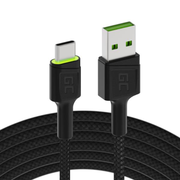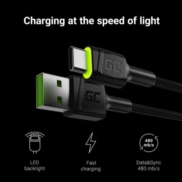 Green Cell Cable Ray USB Cable – USB-C 120cm with green LED backlight and support fast charging Ultra Charge QC 3.0
