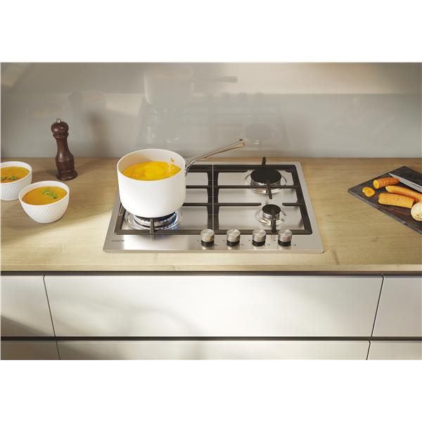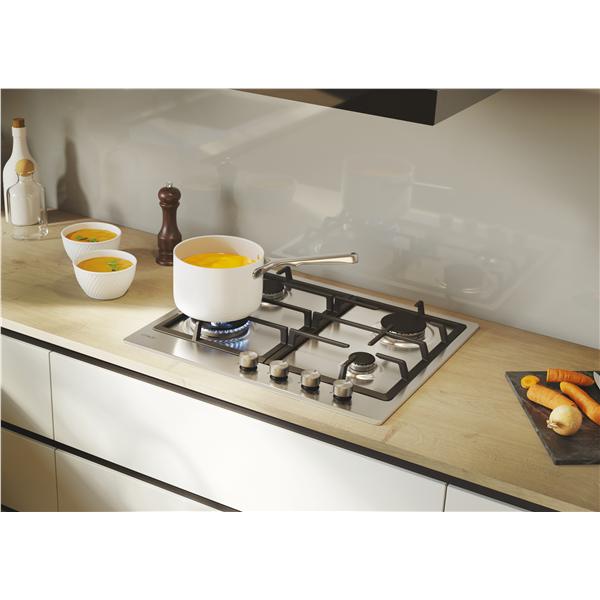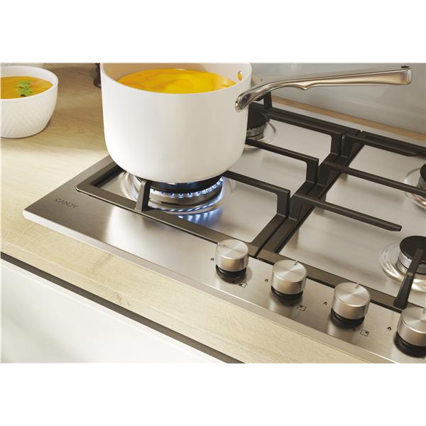 Piano cottura moderna gas 4 fuochi comandi frontali 60cm inox