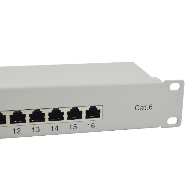 Cat.6 Patch Panel 16-Port 19 Inch 1U light-grey shielded