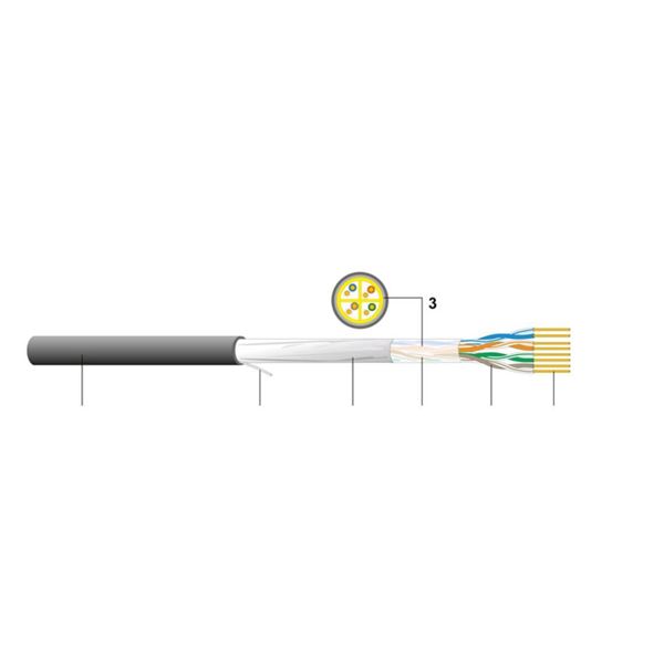 CAVO U/UTP CAT.6 CU 662 4X2XAWG23 CONDUTTORE SOLIDO GUAINA FCA PE POLIETILENE PER ESTERNO COLORE NERO BOBINA 500M