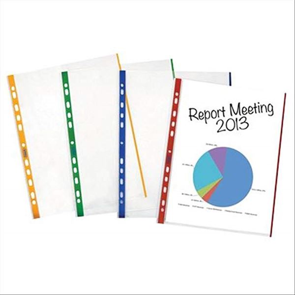 CF 10 BUSTE CON FORATURA BUCCIA ARANCIA PP (NATURENE) BANDA DI RINF.E BORDO BLU SPESSORE MEDIO 21X297