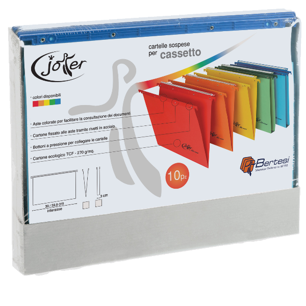 CONF10 CARTELLE SOSPESE JOKER CASSETTO 39 – 39 8 FONDO V COLORI ASSORTITI