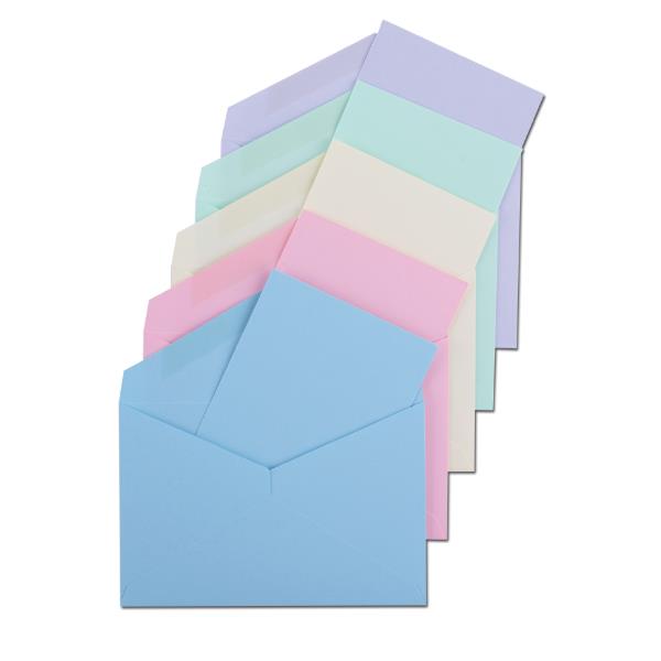 CONFEZIONE 100 BUSTE CON BIGLIETTO MIX 5 COLORI PASTELLO FORMATO 4 (75 X 112 MM) – GRAMMI 100/225