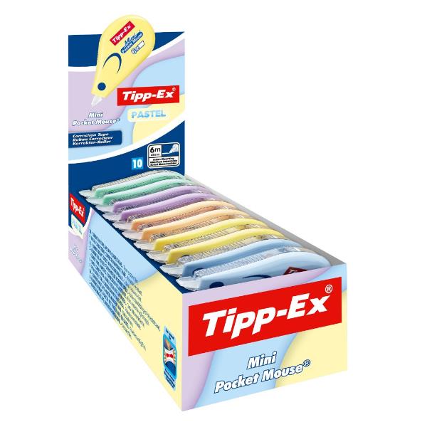 Correttori TIPP-EX Mini Pocket Mouse Pastel 6m x 5mm – Erogatore disponibile in colori pastello assortiti – expo 10pz