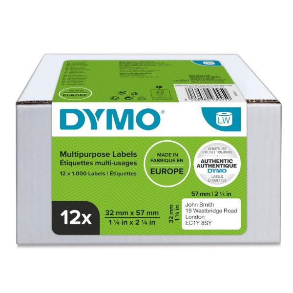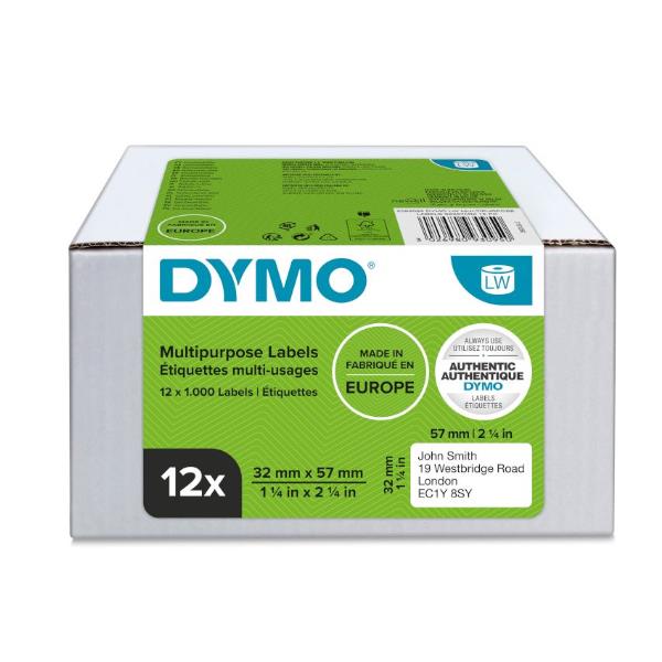 Etichette DYMO LW multi-uso 57 x 32 mm – Bianco VALUE PACK (12 rotoli) – 1000 etichette x 1 rotolo