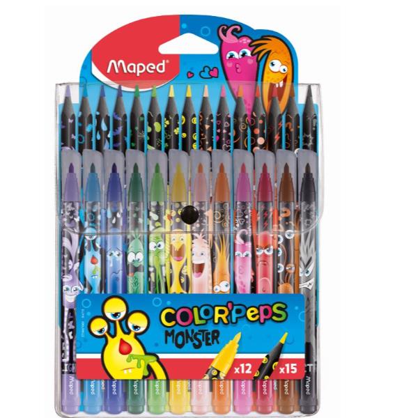 CF27 12 pennarelli + 15 pastelli – fusto nero Monster Combopack