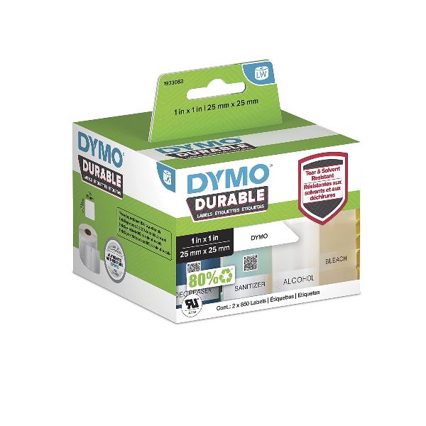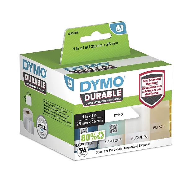Etichette DYMO LW Durable Mutliuso 25×25 mm – Bianco – PERMANENTE – 850 etichette x 2 rotolo/i