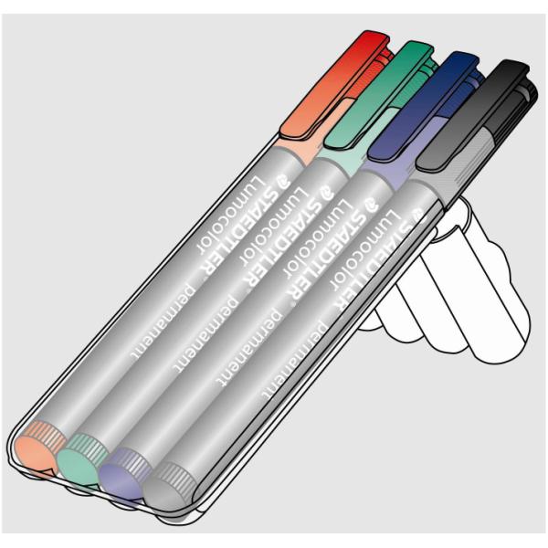 Marcatori Lumocolor Permanent 4 colori assortiti punta tonda c.a. 2 mm dry safe inchistro subito asciutto