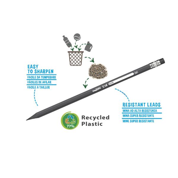 Matita HB CON GOMMA INCORPORATA MINA DA 3 MM SICURA E SUPER RESISTENTE ALLA CADUTA REALIZZATACON IL 77 DI PLASTICA RICICLATA