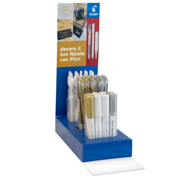 ESPOSITORE DA 36 PEZZI 12PEZZI PENNE G-1 12 PEZZI PENNE G-2 12 PEZZI MARCATORE PINTOR COLORI BIANCO GOLD E SILVER