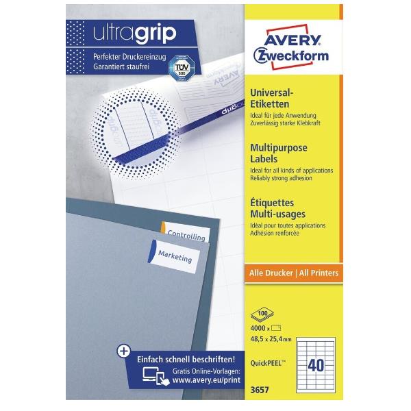 ETICHETTE BIANCHE ECOLOGICHE CERTIFICATE FSC – QUICKPEEL – LASER/INKJET/COPIATRICI – 48 5X25 4 – 100 FF