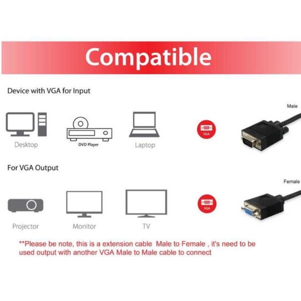 HDB15 3+7 ext. Cable 30AWG OD: 6mm 1m with ferrite beads