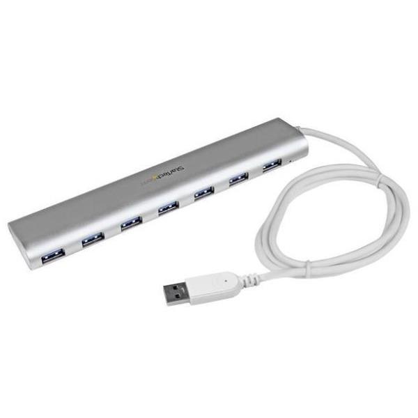 Hub USB 3.0 a 7 porte compatto con cavo integrato – Hub USB in alluminio perfetta per MacBook – Argento