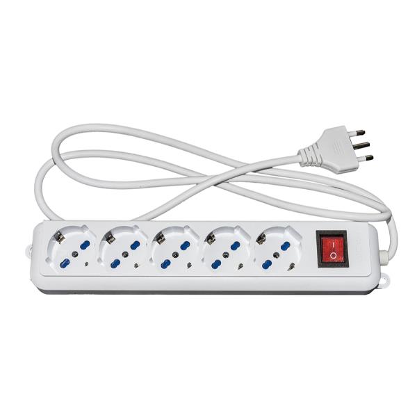 MULTIPRESA 5 PRESE UNIVERSALI ITA/SCHUKO 10/16 A – SPINA 16 A CON INTERRUTTORE BIANCA CON PROTEZIONE CONTRO SOVRACCARICHI