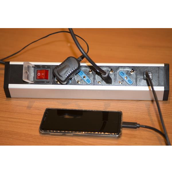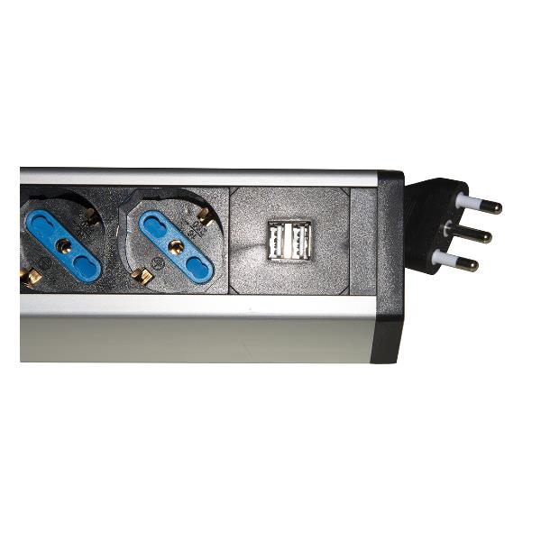 MULTIPRESA DA TAVOLO 4 PRESE UNIVERSALI CON 2 PORTE USB E INTERRUTTORE CON COPERCHIO DI PROTEZIONE CAVO MT 1 80 SPINA TRIPOLARE ITALIANA 16A