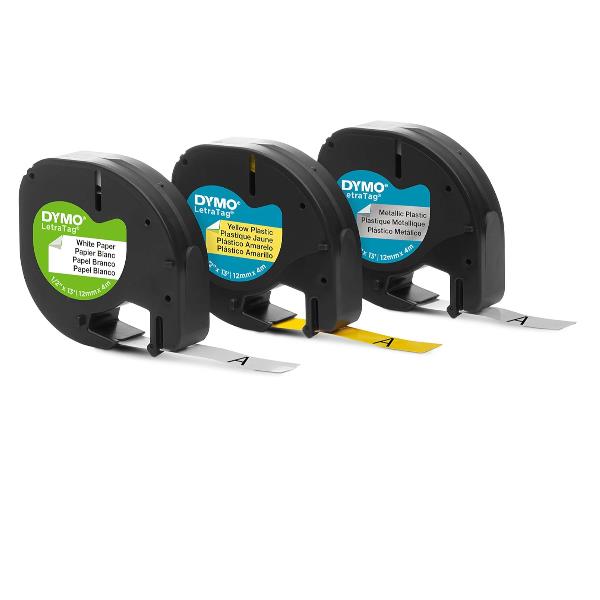 NASTRI DYMO LT 12MMX4MT – STARTER KIT 3 NASTRI – NERO SU ARGENTO/BIANCO/GIALLO