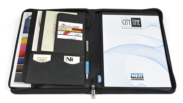 PortaBLOCCO CITY TIME A4 IN TESSUTO BICOLORE. DIM. CM. 26X34 COLORI NERO BLU GRIGIO