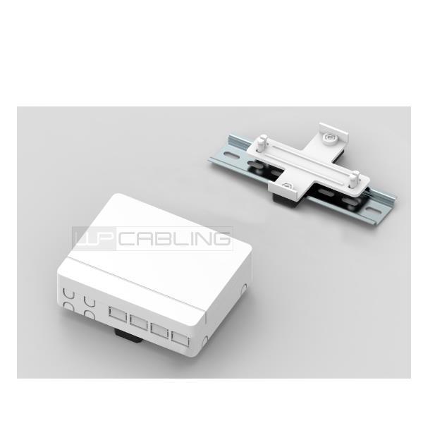 SCATOLA OTTICA DA INTERNO IP20 PER 4 ADATTATORI SC SIMPLEX O LC DUPLEX CON FISSAGGIO A PARETE O SU GUIDA DIN COLORE BIANCO