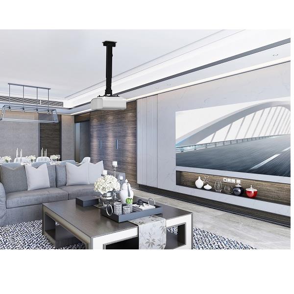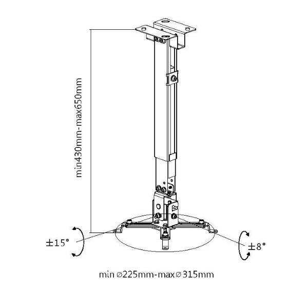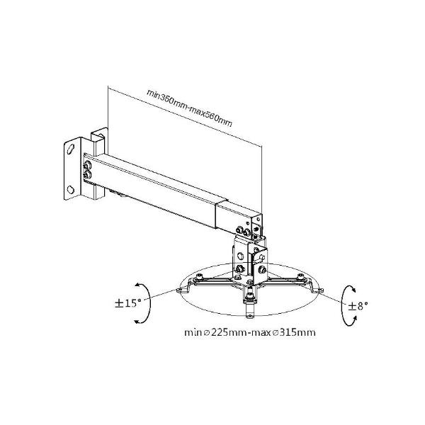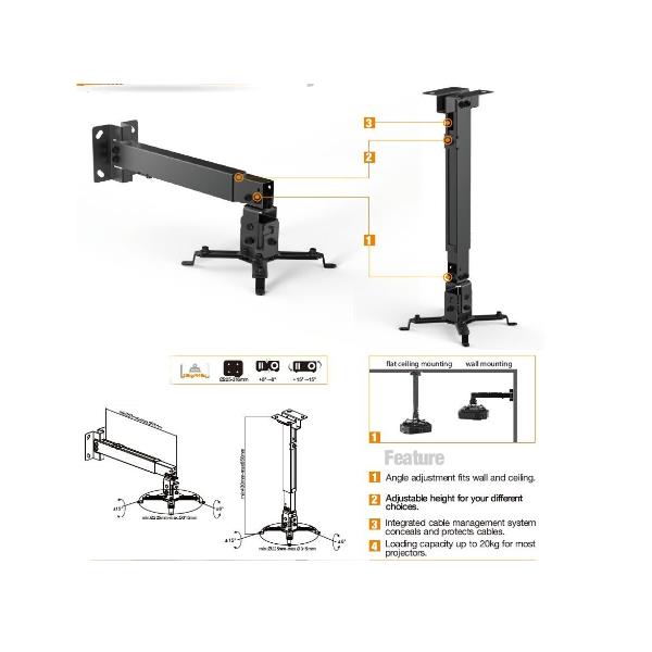 PROJECTOR CEILING WALL MOUNT BRACKET HEIGHT/LENGTH ADJUSTMENT 15° TILT 8° SWIVEL CABLE MANAGEMENT SYSTEM HELPS KEEP CABLES CONCEALED