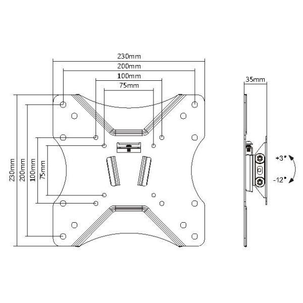 STAFFA MONTAGGIO TV/MONITOR 23 -42 SLIM TV WALL MOUNT BRACKET (+3° TO-12°) VESA 200 X 200 25KG MAX