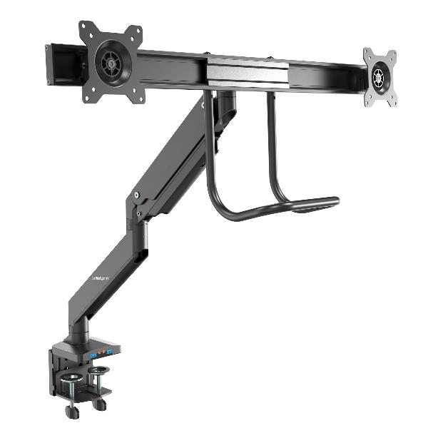 Braccio per doppio monitor da tavolo – 2x porte USB 30 – Supporto monitor con attacco VESA da 17 a 32 (ARMSLIMDUAL2USB3)