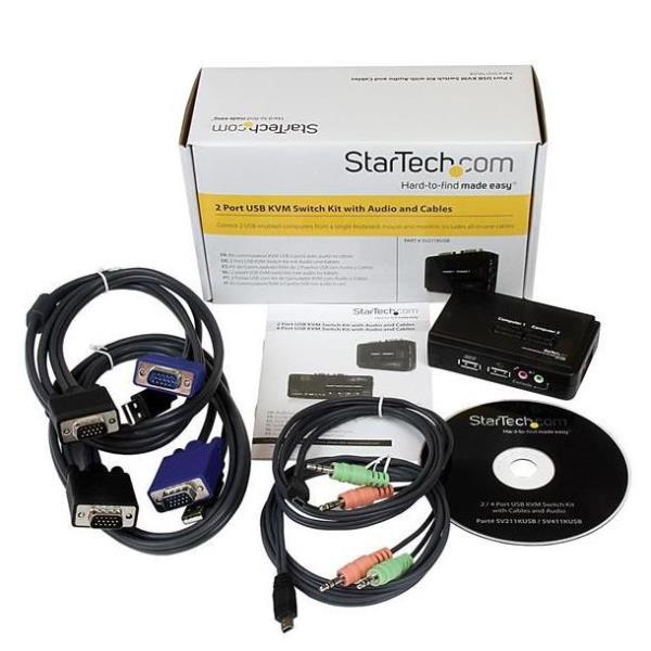 Switch KVM a 2 porte VGA USB con audio e cavi – Commutatore VGA USB a doppia porta – Colore Nero
