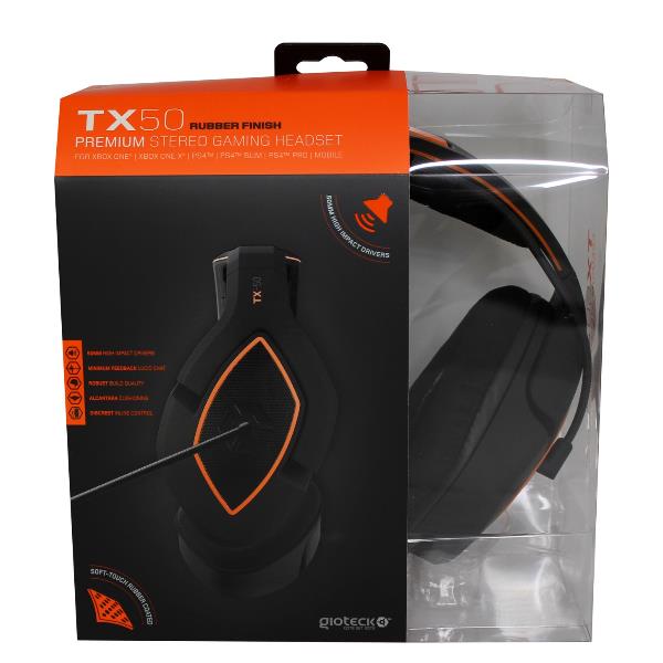 TX50 STEREO GAMING HEADSET CABLATE PER PS4 XBOX ONE PC 50MM HIGH DRIVERS AMMORTIZZAZIONE ALCANTRA MUTO ISTANTANEO PUSH/PULL