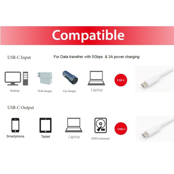 USB 3.2 Gen 1×1 Type-C to C M/M 1.0m 5G transfer 3A White