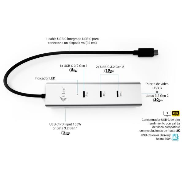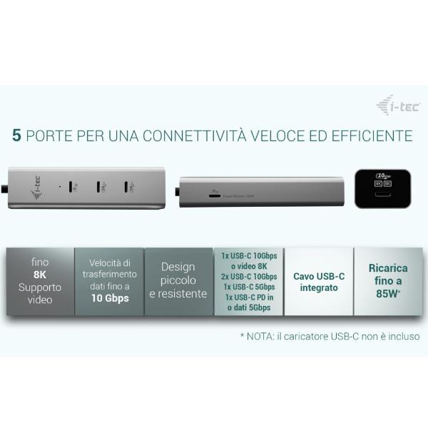 I-TEC USB-C CHARGING METAL HUB 5PORT WITH USB-C VIDEO 8K POWER DELIVERY 85W