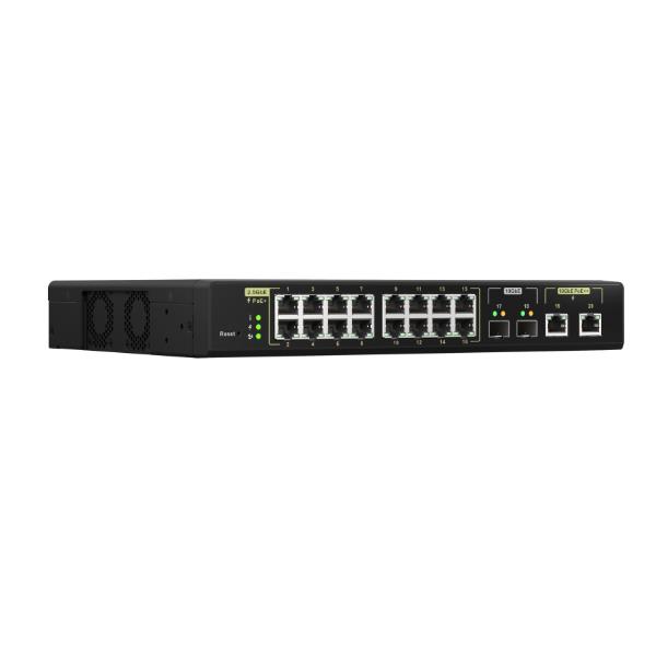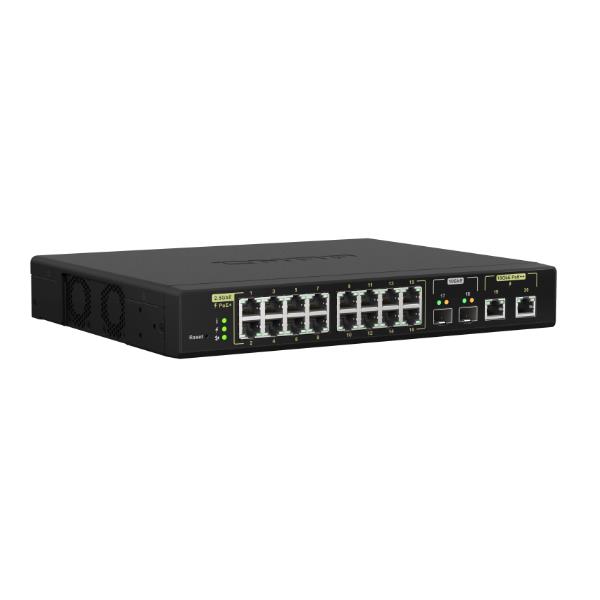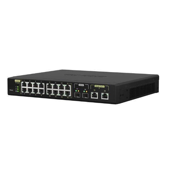 QSW-M2116P-2T2S 16 PORTS 2.5GBE RJ45 WITH POE 802.3AT(30W) 2 PORTS 10GBE SFP+ 2 PORTS 10GBE RJ45 WITH POE 802.3BT(90W) MAX POE POWER
