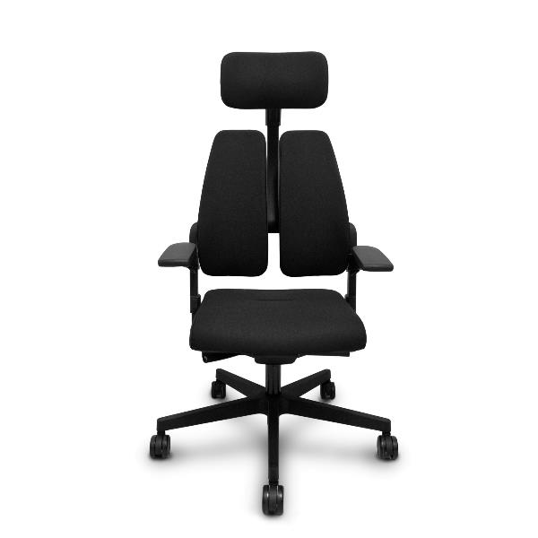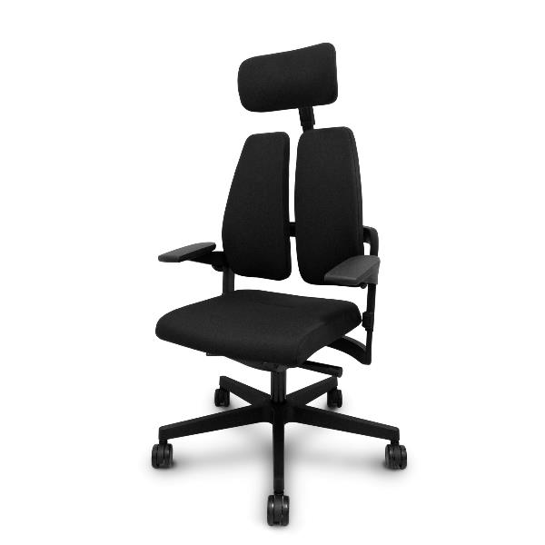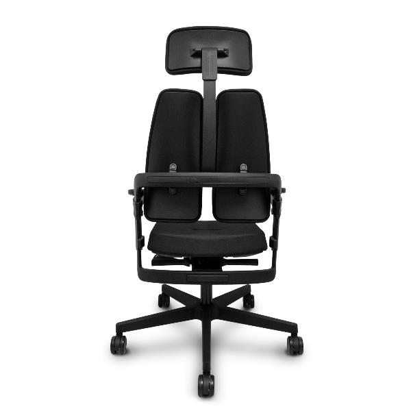 Sedia Xilium Sincro autopesante Tessuto Nero Base in poliammide nera Braccioli 3D Poggiatesta 2D Ruote in nylon autofrenanti da 65mm