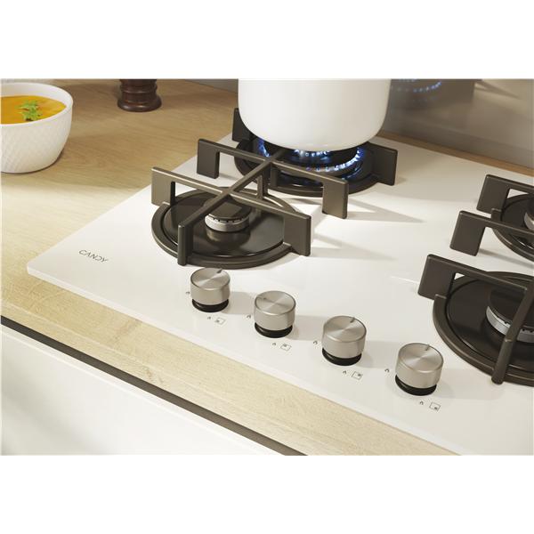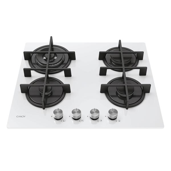 Piano cottura Candy a gas su vetro 4 fuochi 485x568x42 mm bianco