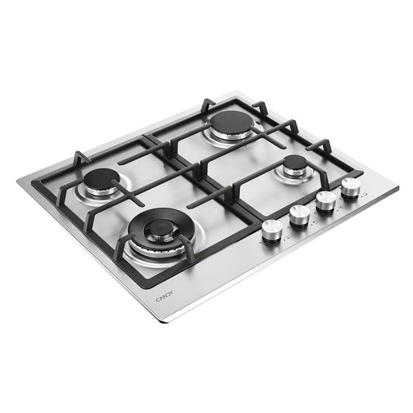 Piano cottura moderna gas 4 fuochi comandi frontali 60cm inox