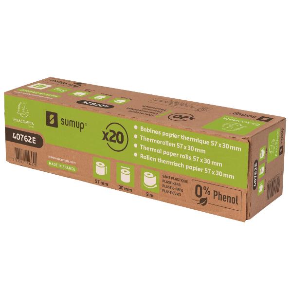 ROTOLO 57X30MM PER POS CARTA TERMICA 55G CERT.FSC UNA COPIA SENZA FENOLO SENZ ANIMA ZERO PLASTICA 9 MT BIANCO