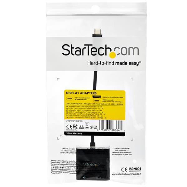 Adattatore USB-C a DisplayPort con tecnologia Power Delivery - 8K 30 Hz - Convertitore USB Type C a DP 1.4 (CDP2DP14UCPB)