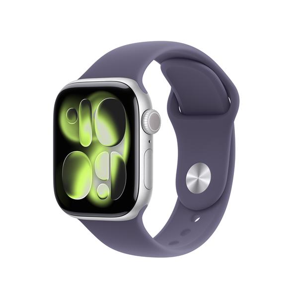 Apple Watch Series 11 GPS, Cassa 42 mm in alluminio color argento con Cinturino Sport viola nebbia - S/M
