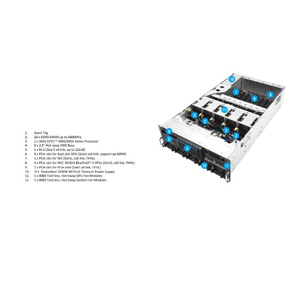 Rack Genoa RS520A-E12-RS12U/1G/1.6kW/12NVMe/FAN/RH/OCP/GPU