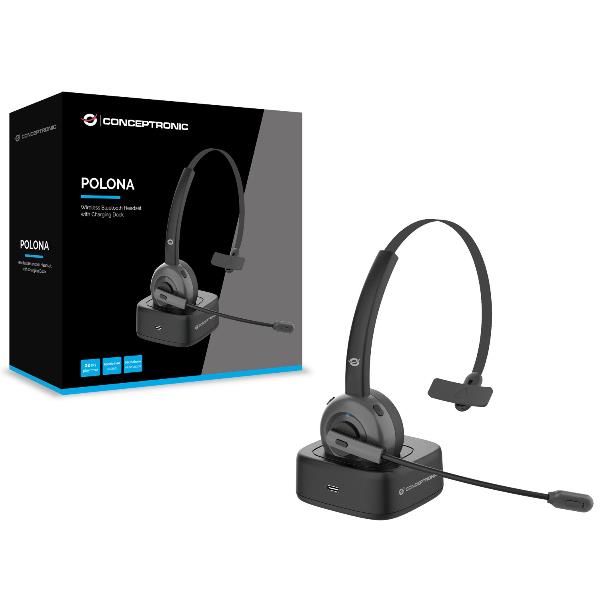 WIRELESS BLUETOOTH HEADSET WITH CHARGING DOCK CVC NOISE CANCELLATION