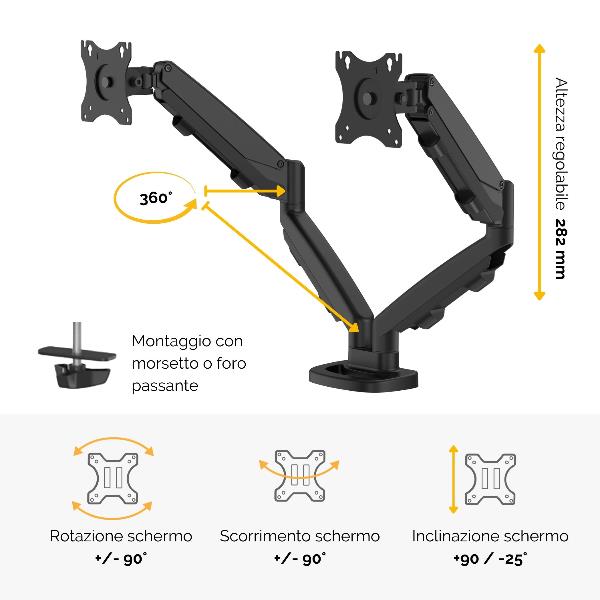 BRACCIO MONITOR DOPPIO EPPA NERO