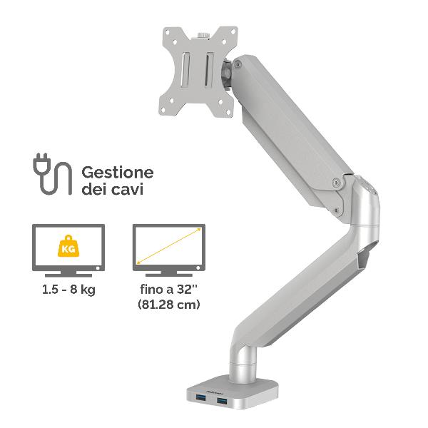 BRACCIO MONITOR SINGOLO PLATINUM COLORE ARGENTO