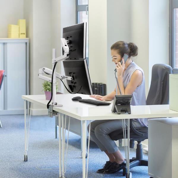 BRACCIO PER DUE DISPLAY SOVRAPPOSTI-ASTA ALTA (BIANCO)