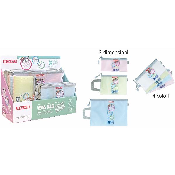 ESP36 BUSTINA IN EVA C/ZIP 3 FORMATI PASTEL 4 COLORI ASSORTITI